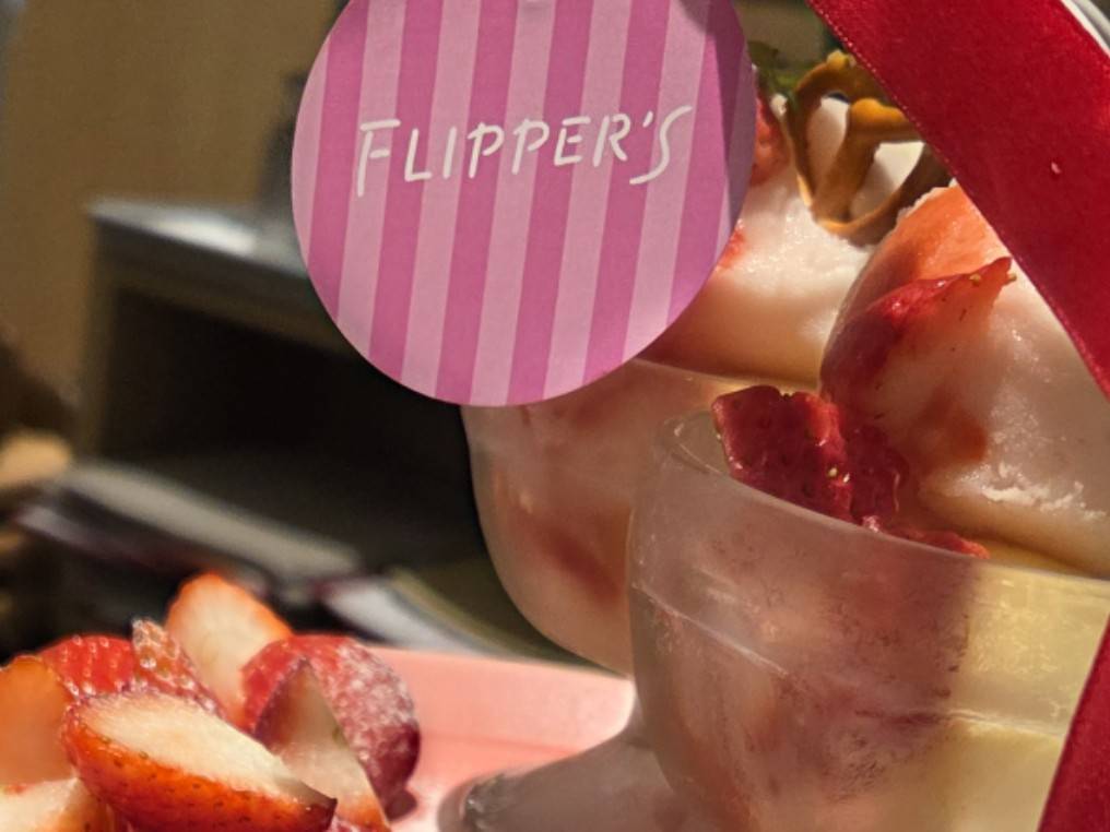 結果、FLIPPER’Sのモダンでお洒落な空間にも、お皿の上の真っ赤な苺にも最高のバランスで寄り添うことが出来たような気がします。